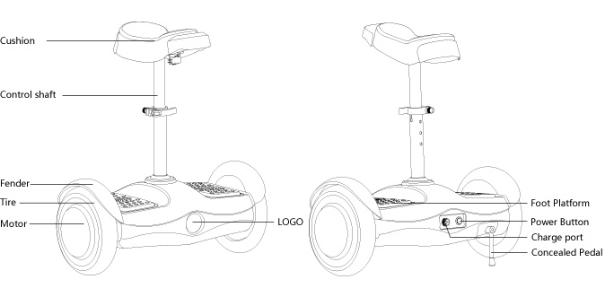 • Height: 790mm Length: 503mm Width: 322mm Weight: 14kg Tire Size: 8in
